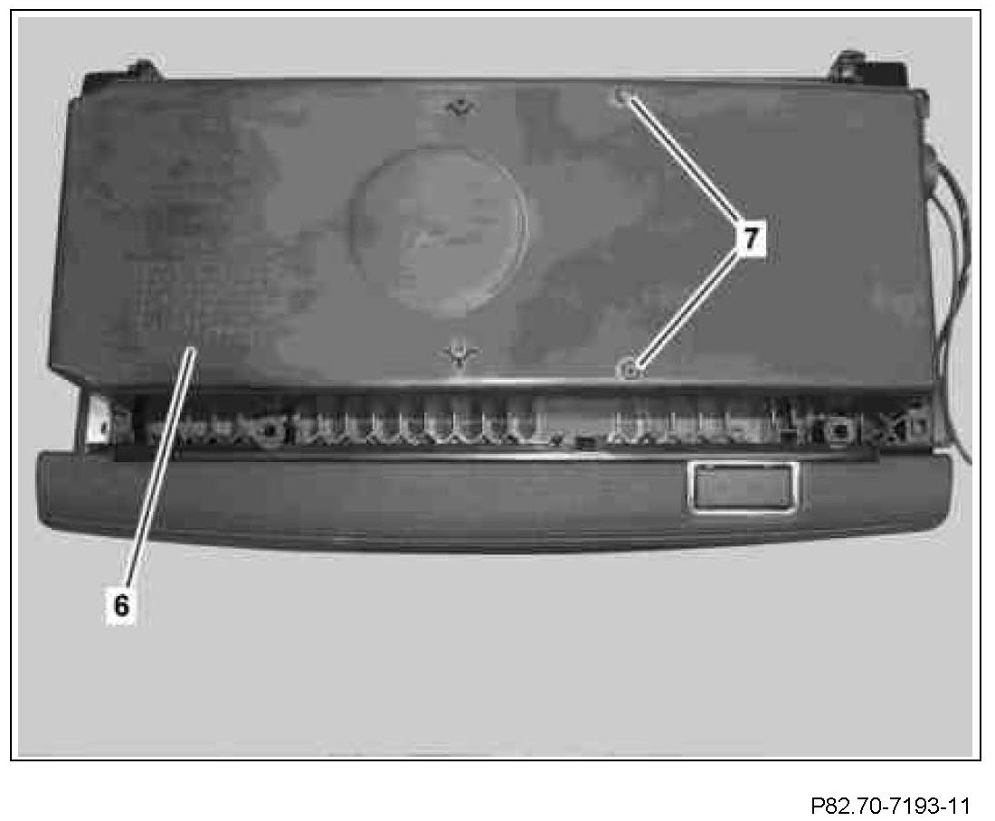 6 Insert paneling (1) with Bluetooth module (A34/7) into stowage compartment in lid (6) and clip in.