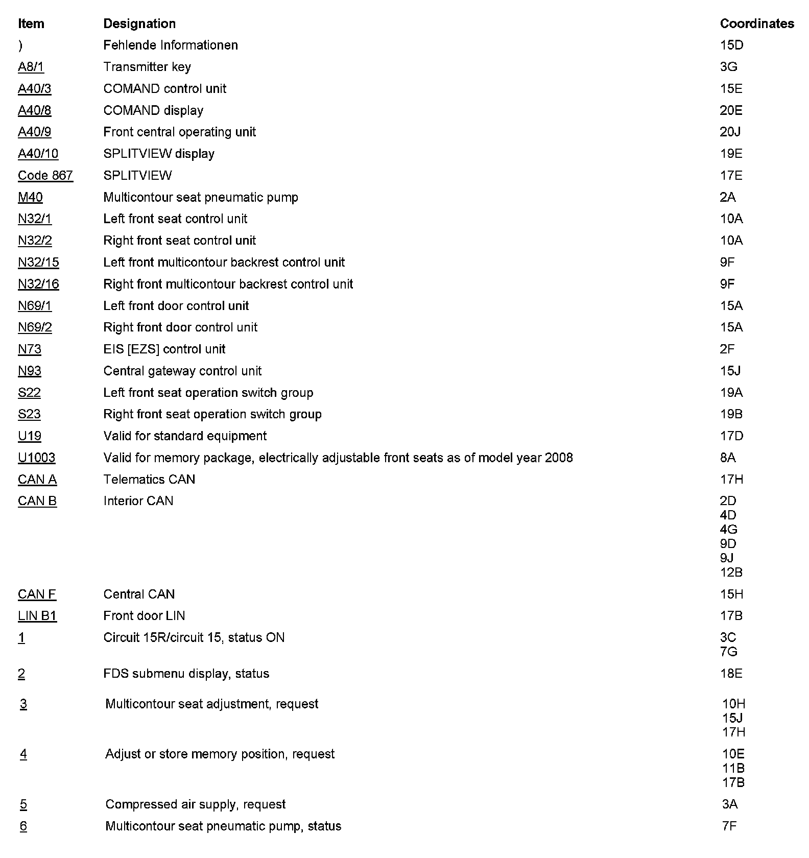 PE91.25-U-2051SAB Electrical Function Schematic For Multicontour Seat