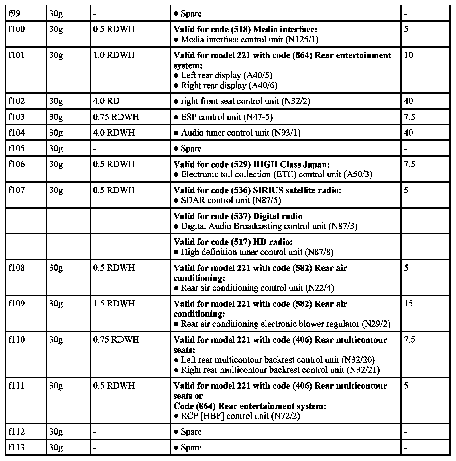 Fuse F99 To F113: