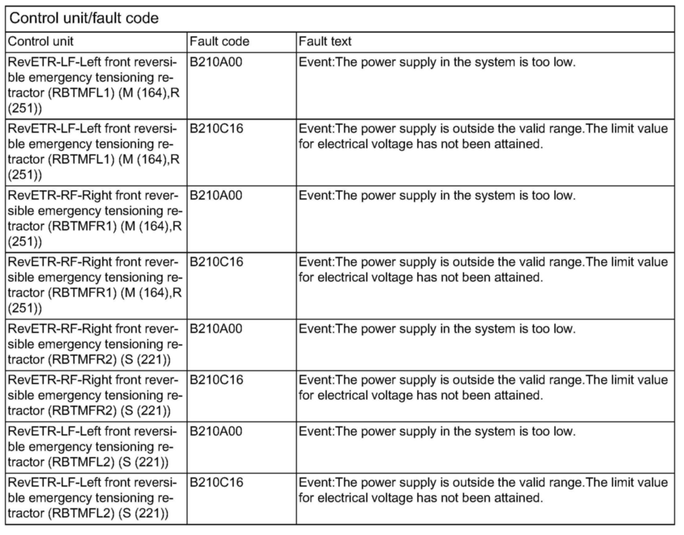 For BR 221 as of production date 09/2010 (code 801), BR164, BR 251 as of production date 06/2009 (code 800), the new software is available as of DVD11/2010 (Xentry). The new software is installed by repeating initial startup of control units A76 (left front reversible emergency tensioning retractor) or A76/1 (right front reversible emergency tensioning retractor).