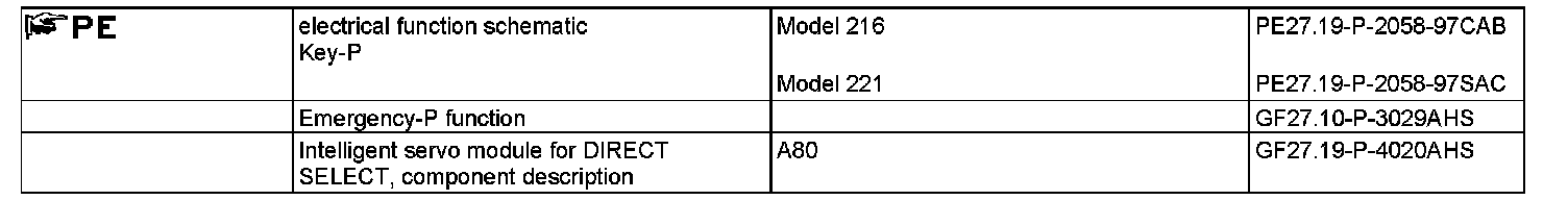 The park pawl only permits shifting out of selector lever position "P" through the gear selector switch DIRECT SELECT (S16/13) when the transmitter key (A8/1) is turned into position "circuit 15 ON" and the brake pedal is operated.