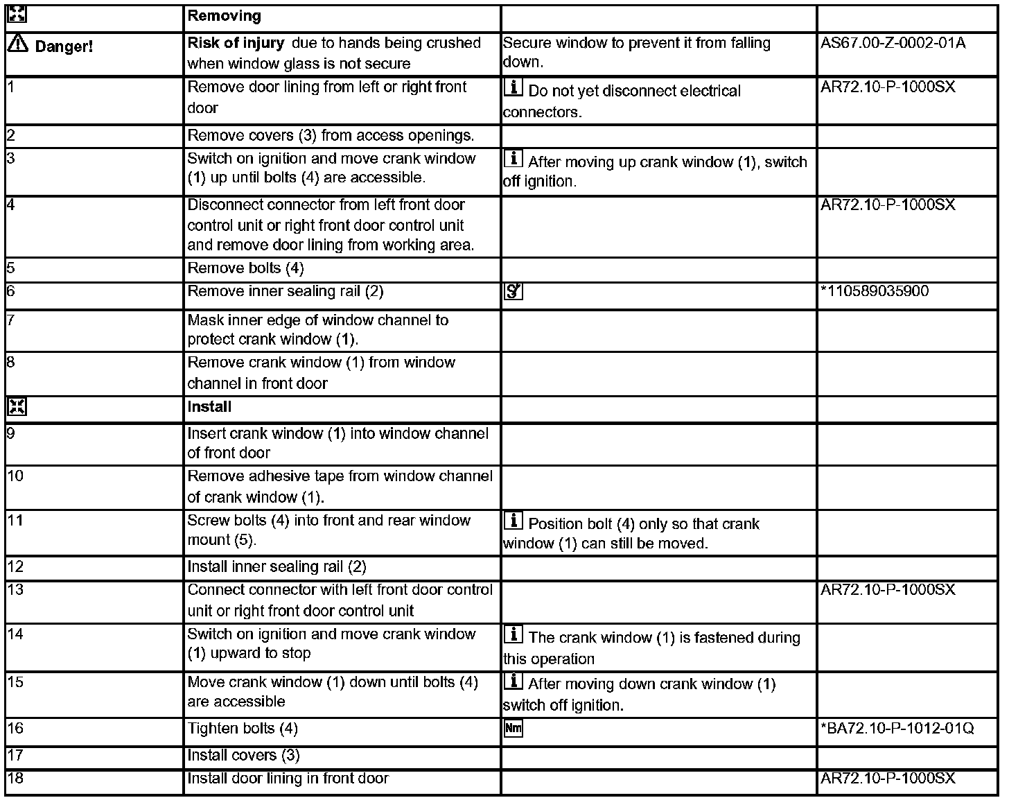 AR72.10-P-1900SX Remove/Install Crank Window In Front Door