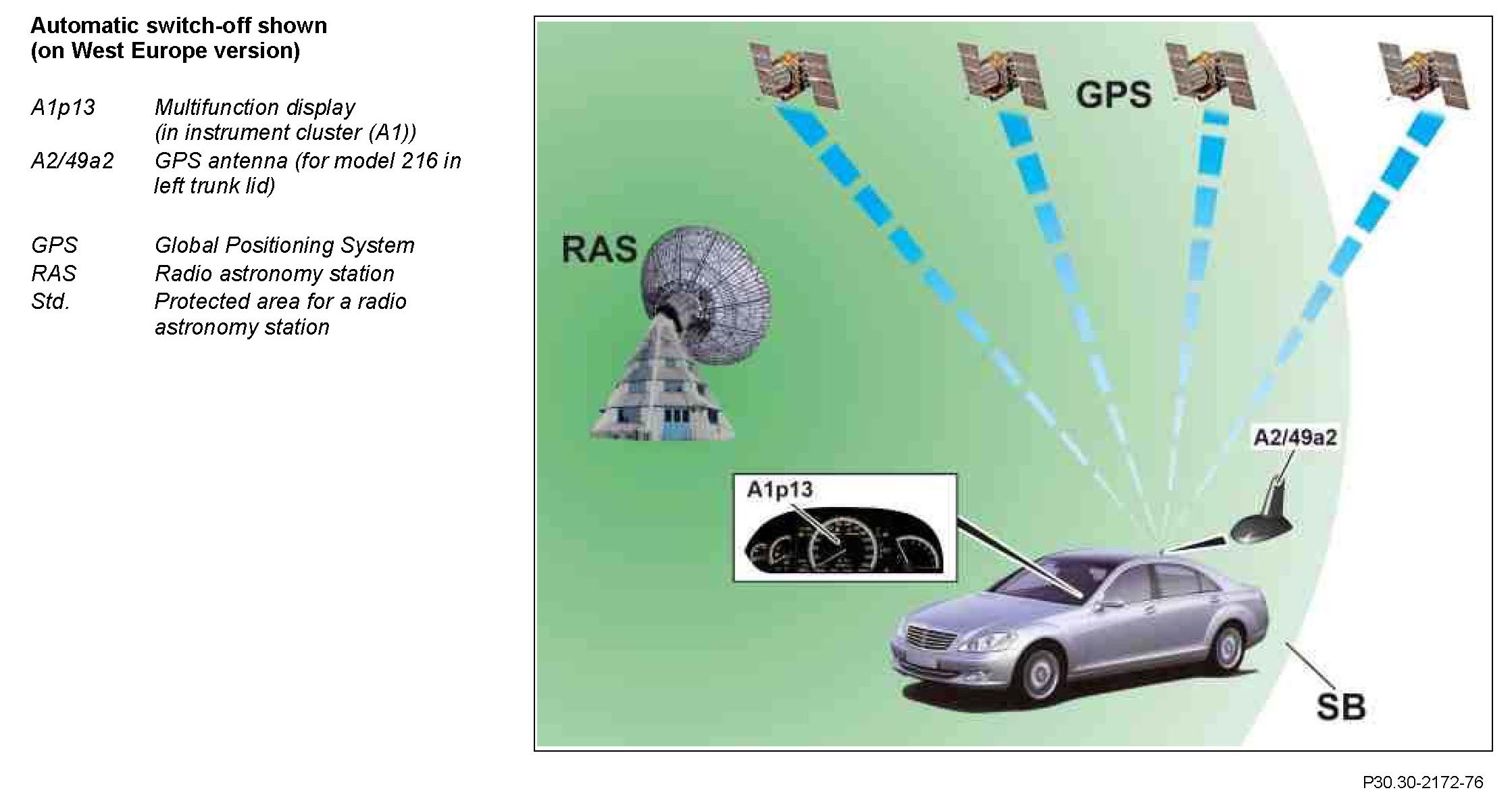 The special equipment DISTRONIC PLUS is only available in combination with the global positioning system navigation system (COMAND controller unit (A40/3) with navigation) in Western Europe due to the automatic shut-off.