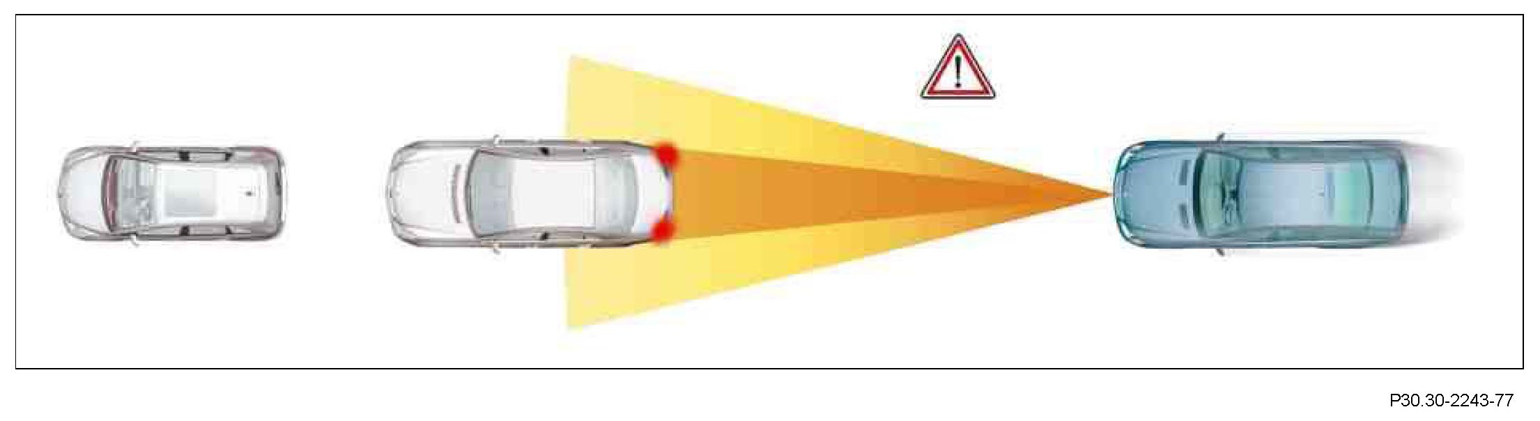 The data from the radar is used to continuously calculate the potential risk of a collision. If the driver brakes heavy in a critical situation, the brake force is (if necessary) boosted so as to avoid a collision (within physical limits).