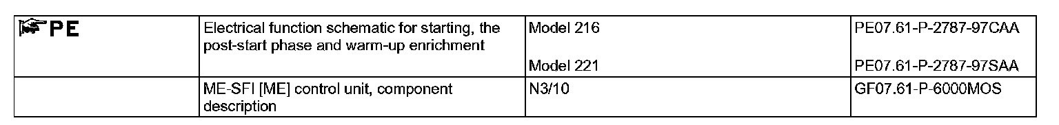 The ME-SFI control unit calculates the injection time for the post-start enrichment according to the following sensors and signals: