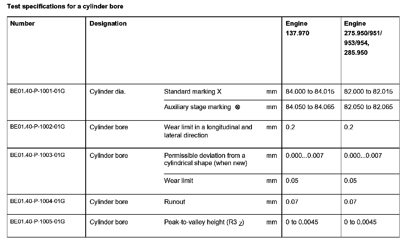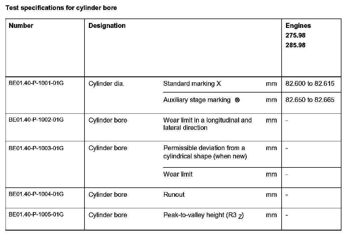 BE01.40-P-1000-01G Test specifications for a cylinder bore