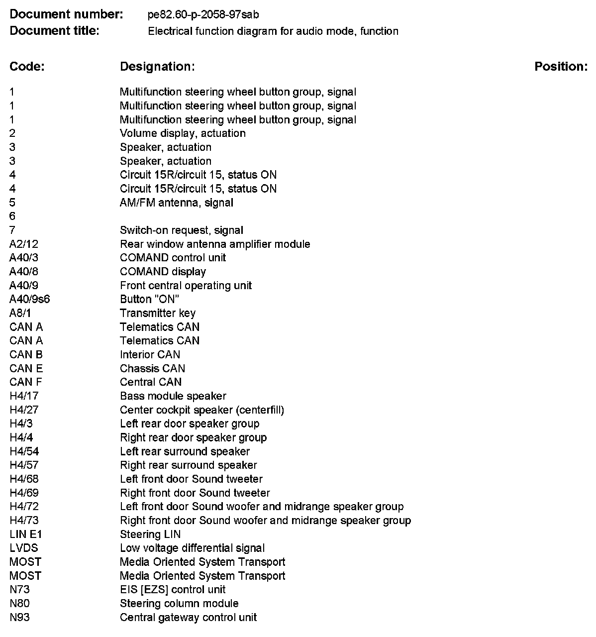 PE82.60-P-2058SAB Electrical Function Diagram For Audio Mode, Function