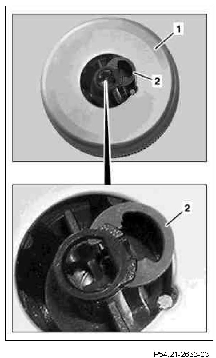 Install the circlip (2) carefully and cover the center armrest trim with a suitable protective cover in order to avoid damage.