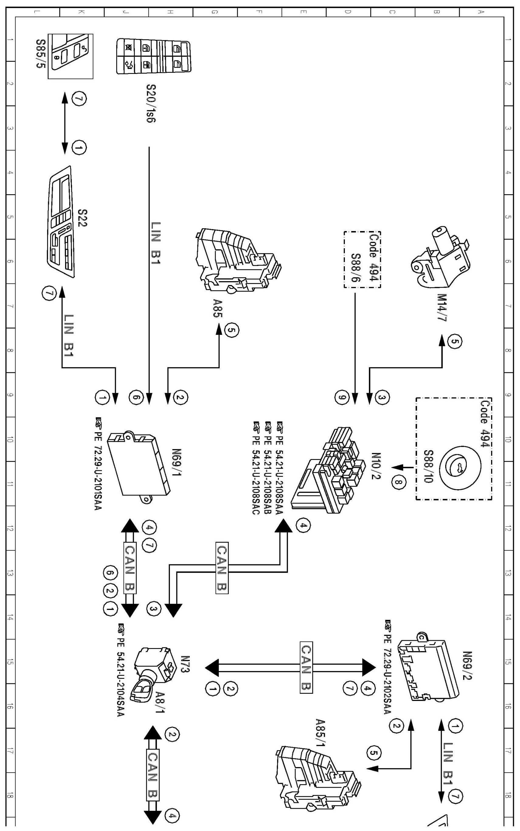 PE80.20-U-2053SAA Electrical Function Diagram For Central Locking System With Inside Switch, Lock and Release