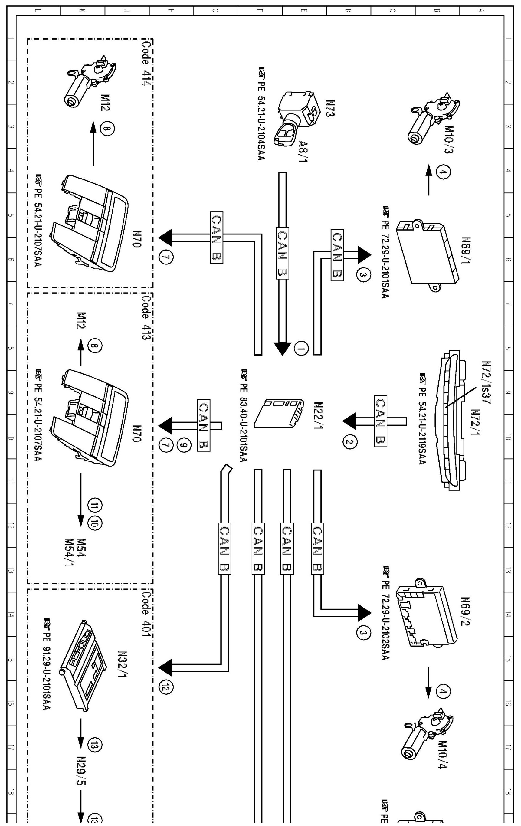 PE80.45-U-2053SAA Electrical Function Diagram For Comfort Opening/Closing Over Air Recirculation Function