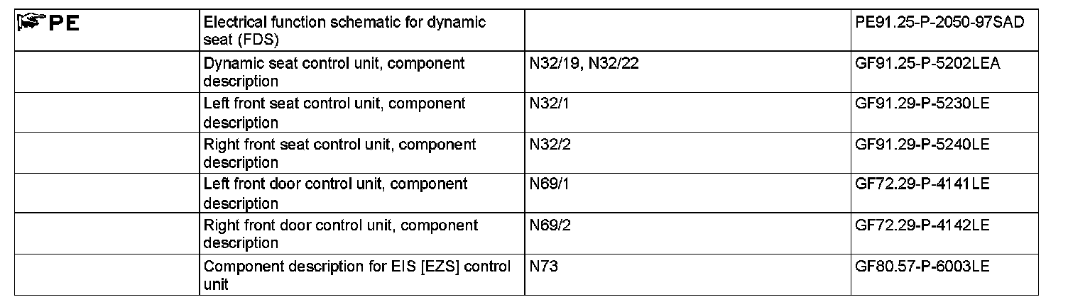 The status of the switch is read in via the front door LIN (LIN B1) by the left front door control unit (N69/1) and transmitted to the left front seat control unit (N32/1) via the interior CAN. The left front seat control unit then transmits the storage or adjustment command for the corresponding position to the left front dynamic seat control unit.
