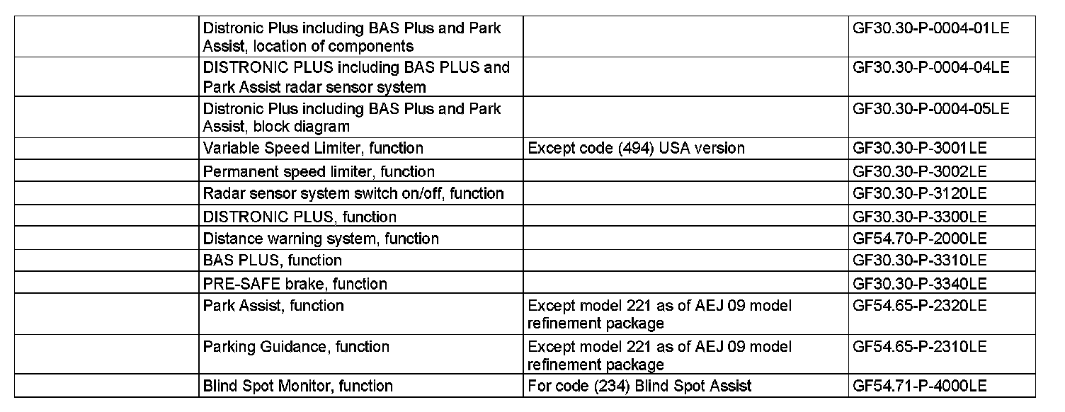 ^ Parking Guidance (except model 221 as of AEJ 09 model refinement package)