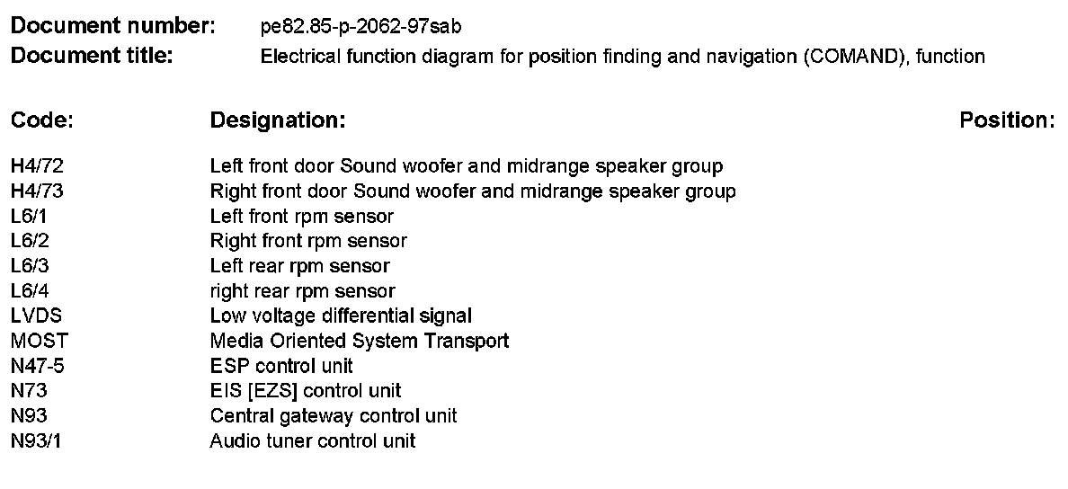 PE82.85-P-2062SAB Electrical Function Diagram For Position Finding and Navigation (COMAND), Function