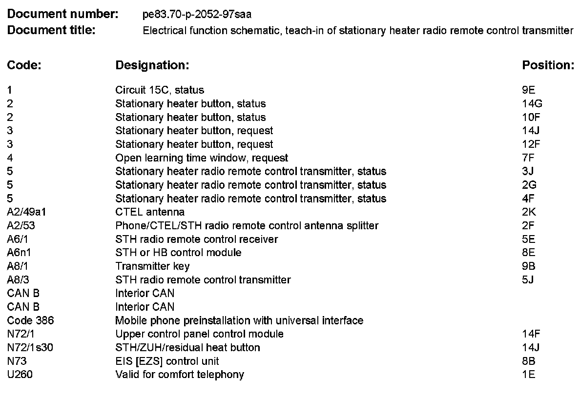 PE83.70-P-2052SAA Electrical Function Schematic, Teach-In Of Stationary Heater Radio Remote Control Transmitter