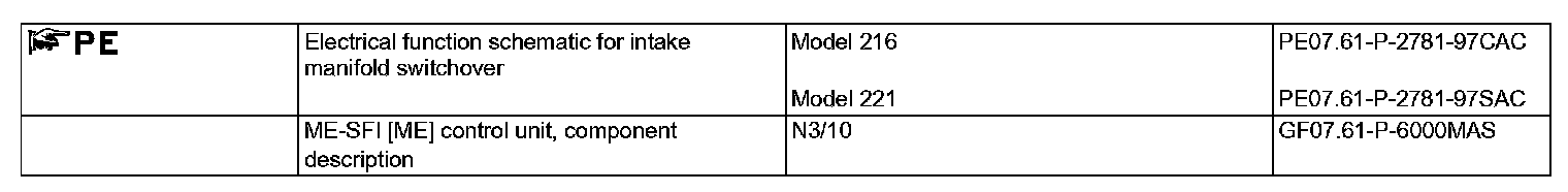 The ME-SFI control unit (N3/10) actuates the intake manifold switchover according to the signals from the following sensors: