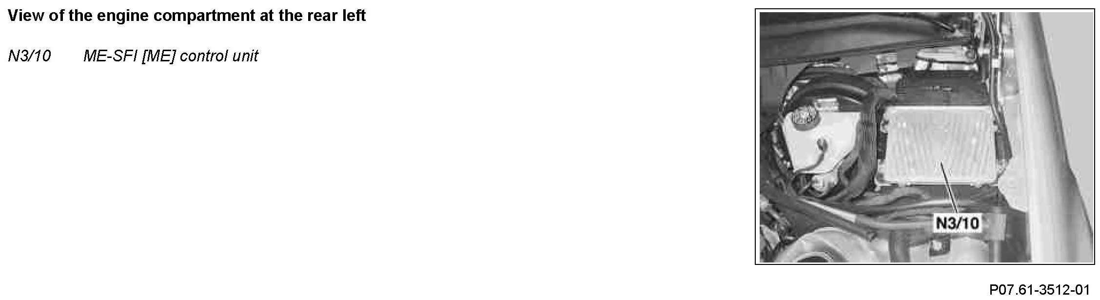 The ME-SFI [ME] control unit is located at the rear left in the engine compartment.