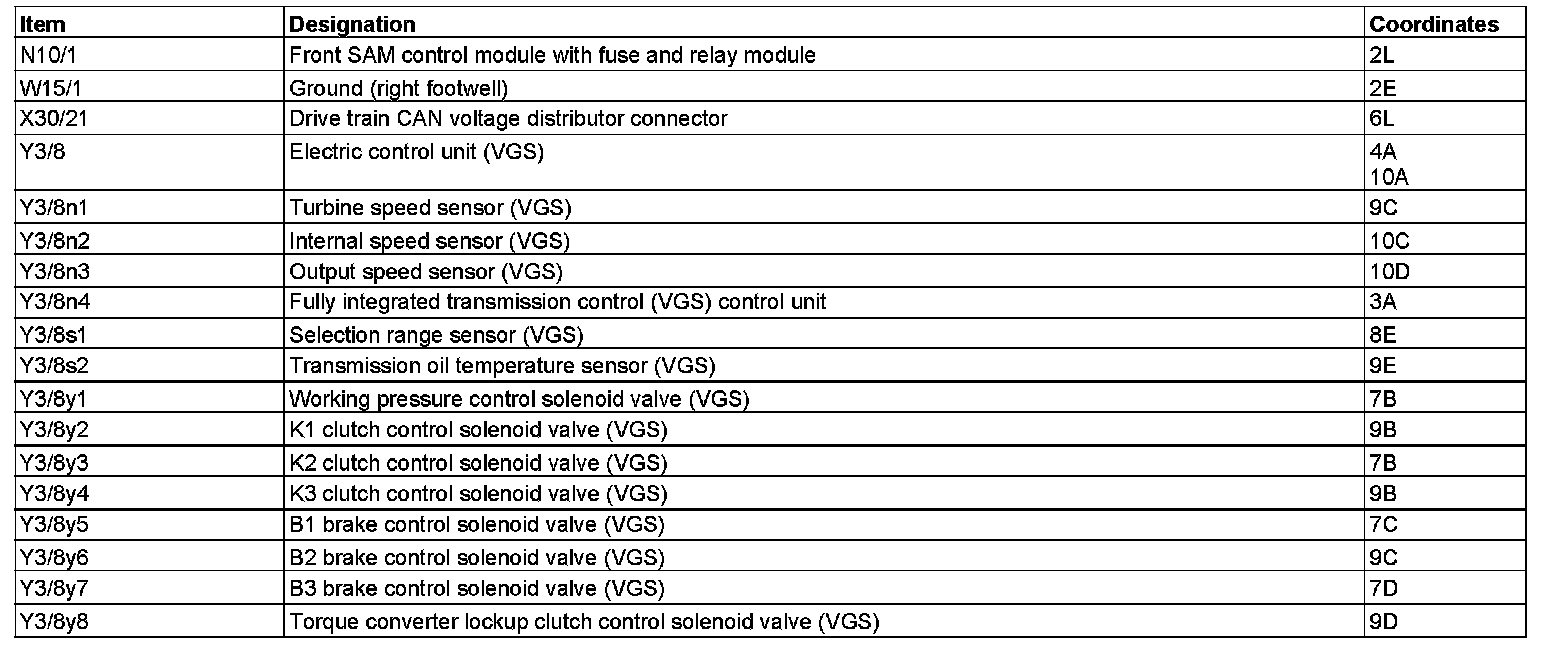 Component Description/Coordinates, N10/1 To Y3/8y8: