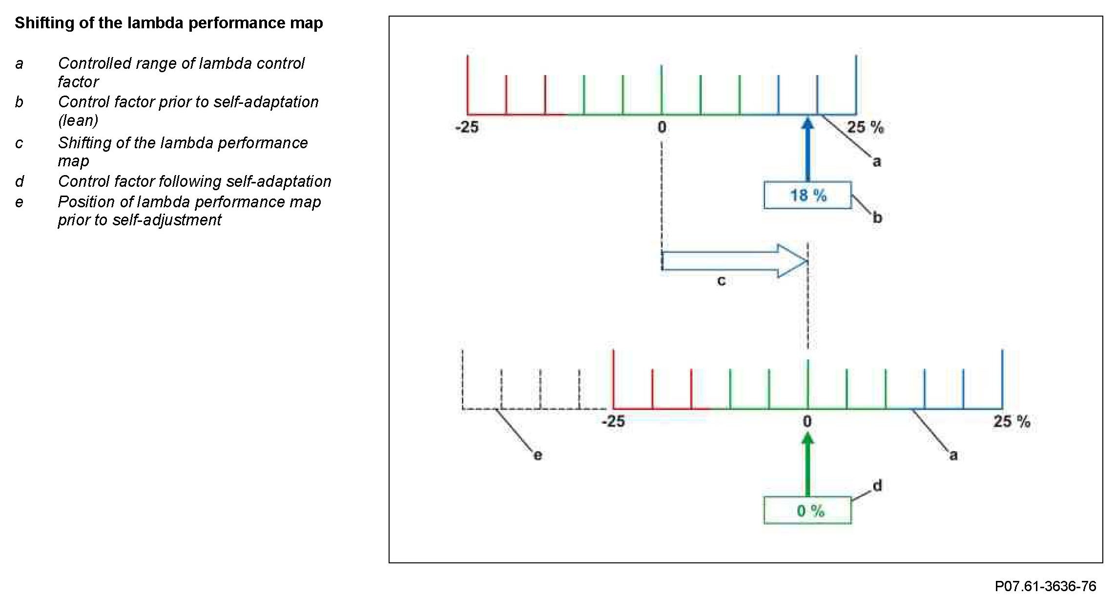 This shifting of the lambda performance map is the self-adjustment of the mixture formation process to the existing air/fuel mixture.