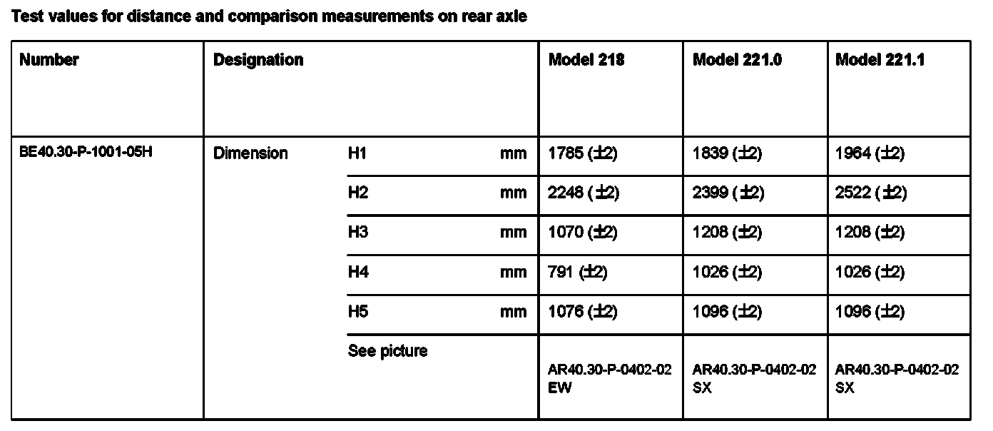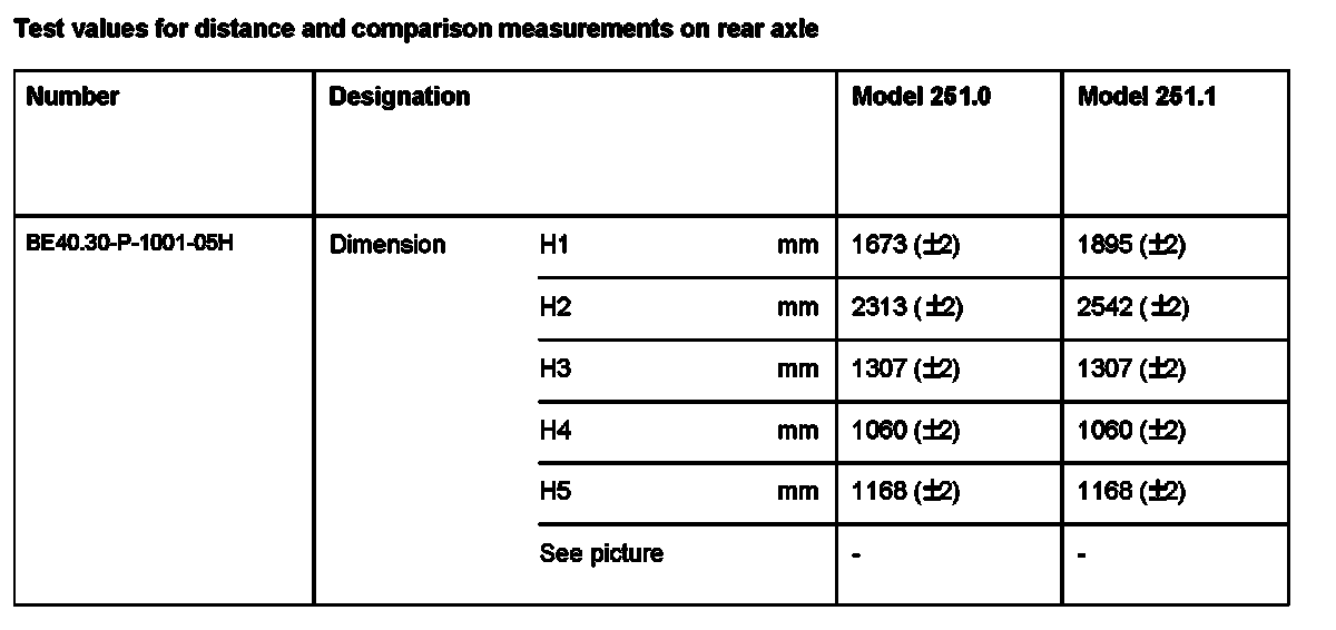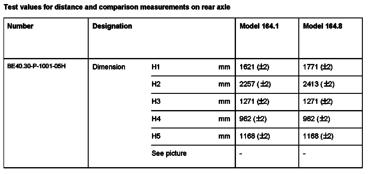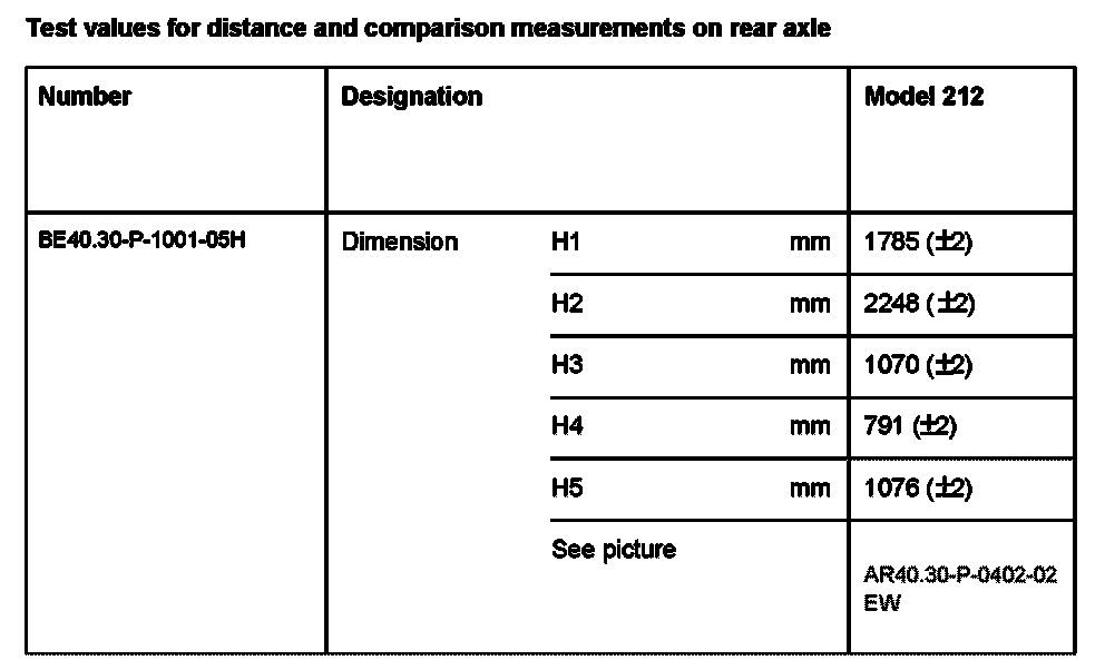 BE40.30-P-1000-05H Test values for distance and comparison measurements on rear axleModification Notes: