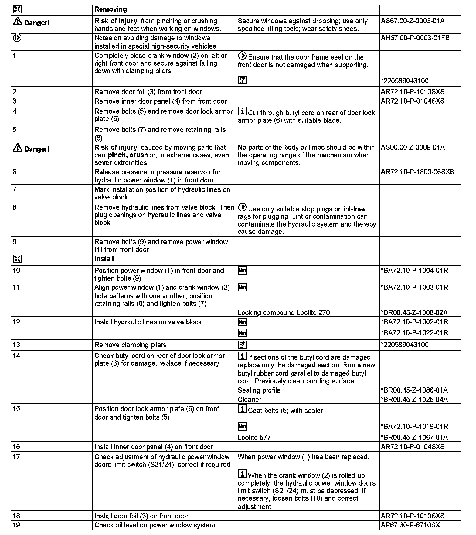 AR72.10-P-1800SXS Remove/Install Front Door Window Lifter