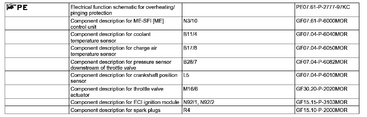The ME-SFI [ME] control unit (N3/10) controls the overheating/knock protection according to information from the following sensors: