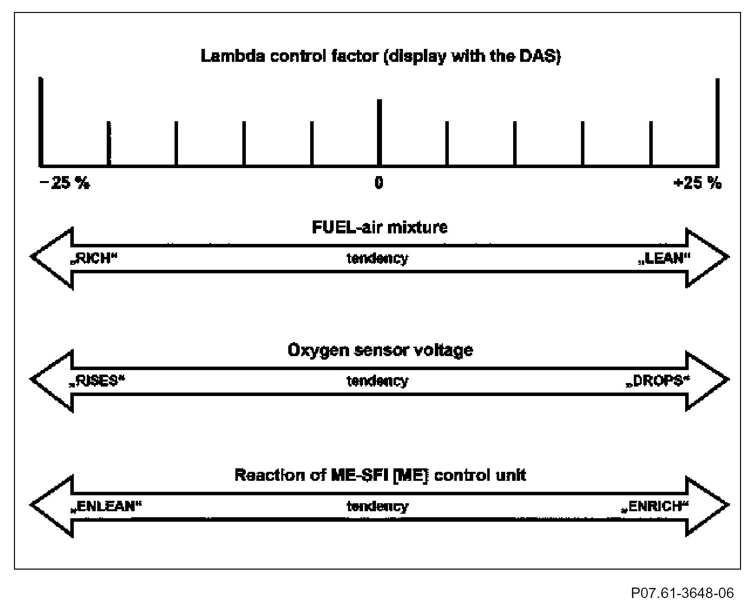 The more the lambda control factor moves in the direction +25%, the leaner is the fuel-air mixture and the greater is the enrichment of the mixture on the part of the ME-SFI [ME] control unit.