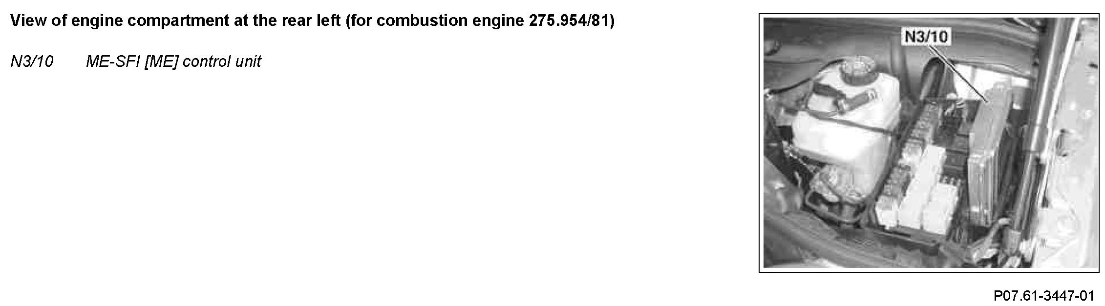 The ME-SFI [ME] control unit represents the engine control, when connected electrically with the sensors and actuators for engine 275 KE (Kanal-Einspritzung (port injection)).