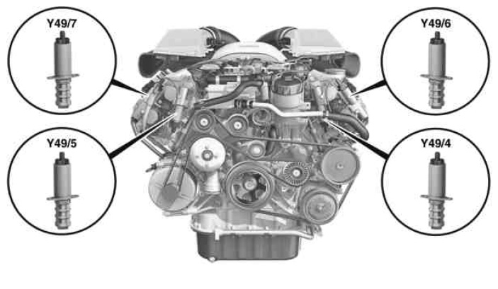 Die solenoids actuate the camshaft adjustment, which allows all camshafts to be displaced continuously by up to 42° crank angle.