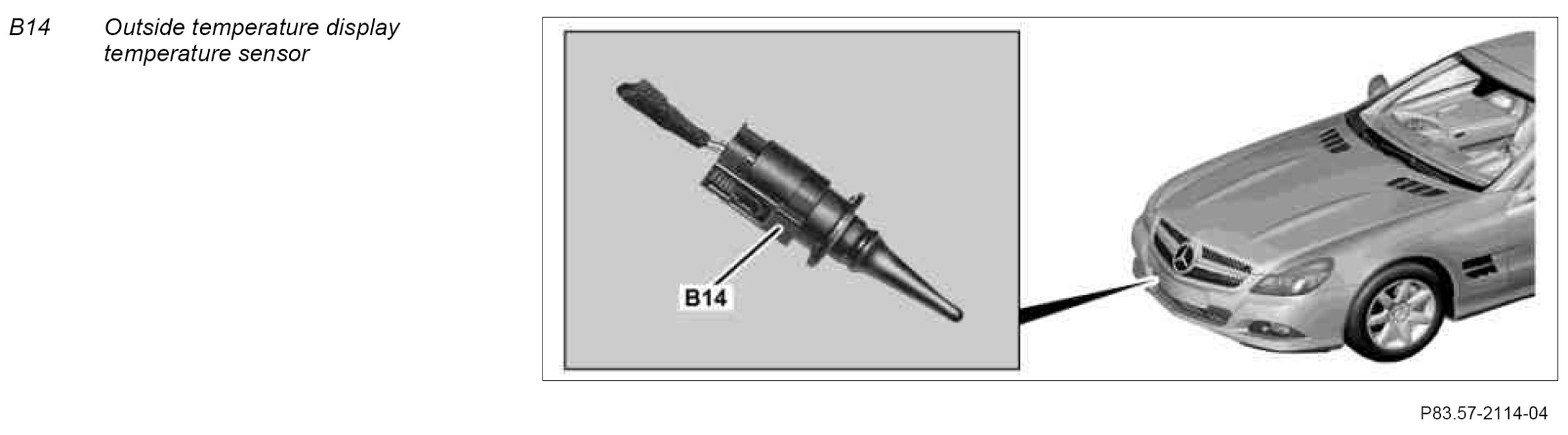 The outside temperature indicator temperature sensor is located at the right front in the bumper.