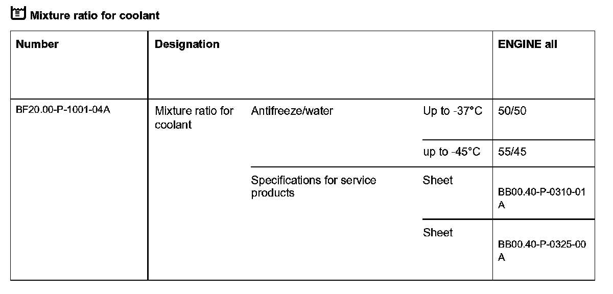 Mixture ratio for coolant: