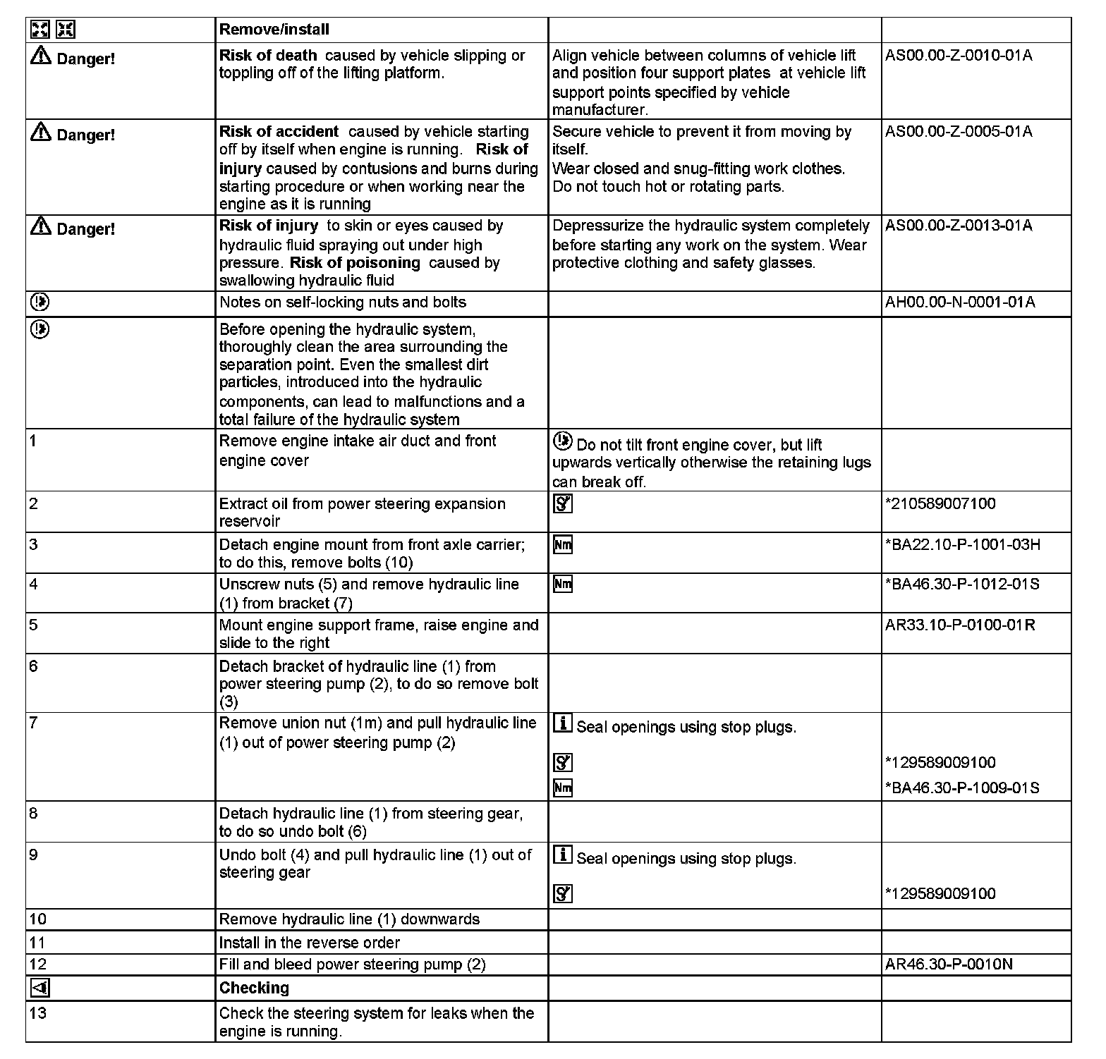 AR46.25-P-3015RMG Remove/install hydraulic line of power steering