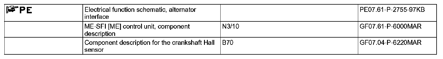 For alternators with an alternator interface, line "terminal 61" is not needed. From information which the ME-SFI [ME] control unit receives via the alternator interface, the "terminal 61 signal" is simulated in the ME-SFI [ME] control unit and is emitted via an output stage switching to ground (e.g. for the instrument cluster).