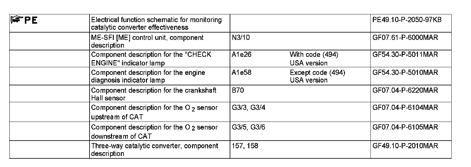 If a fault is detected, the ME-SFI control unit actuates the engine diagnosis indicator lamp (A1e58) through the engine compartment CAN (CAN C) or, with code (494) USA version, the CHECK ENGINE indicator lamp (A1e26) on the instrument cluster (A1).