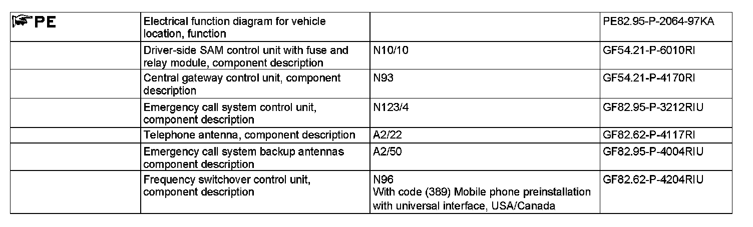 - Frequency switchover control unit (N96), with code (389) Mobile phone preinstallation with universal interface, USA/ Canada, and direct line