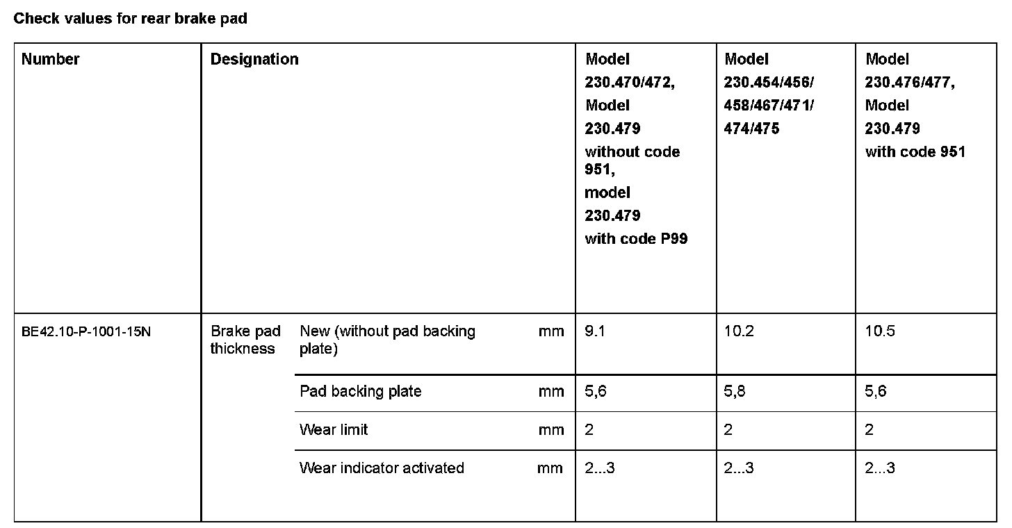 BE42.10-P-1000-15N Check Values For Rear Brake Pad
