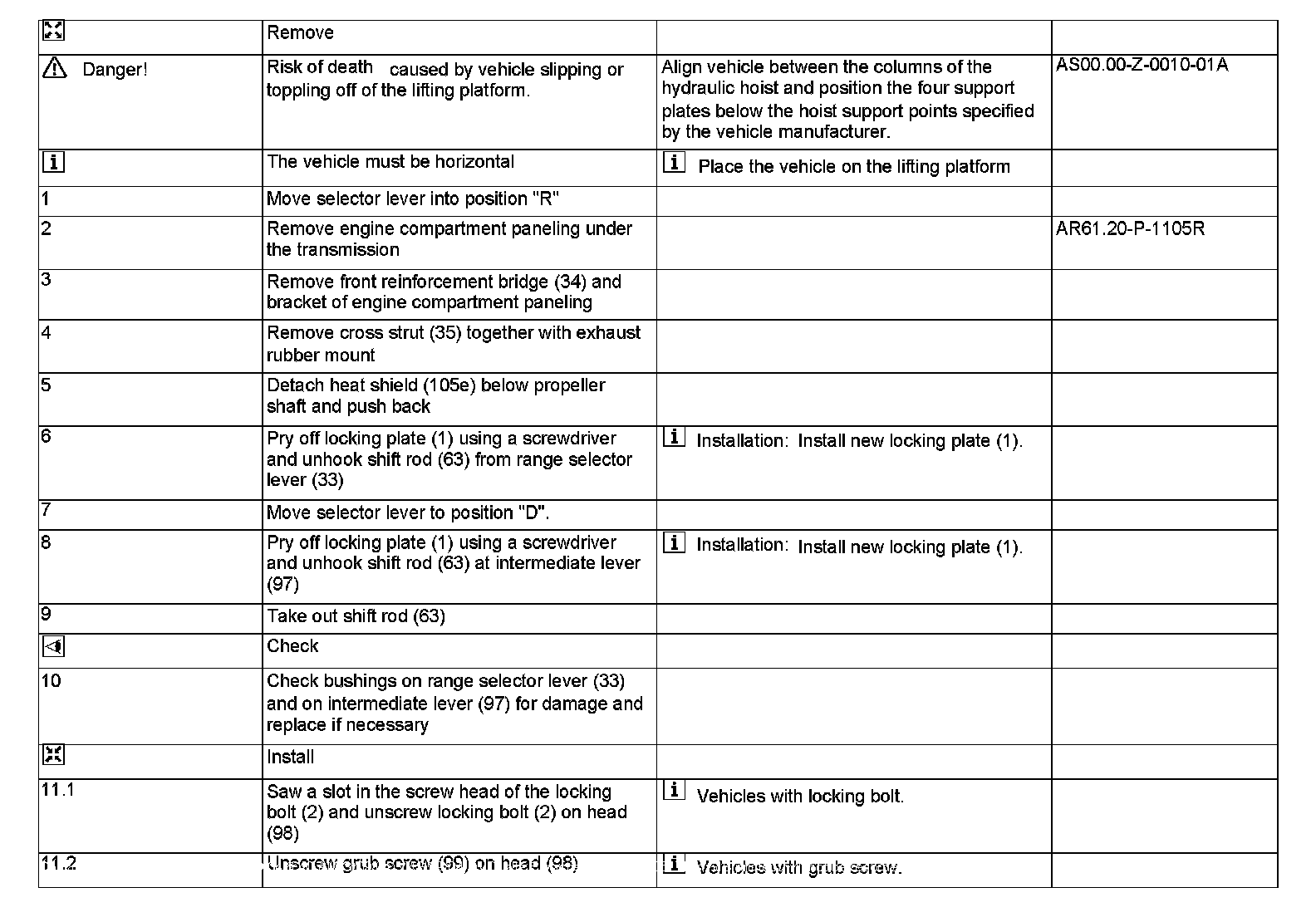 AR27.60-P-0990R Remove/Install and Set Shift Rod