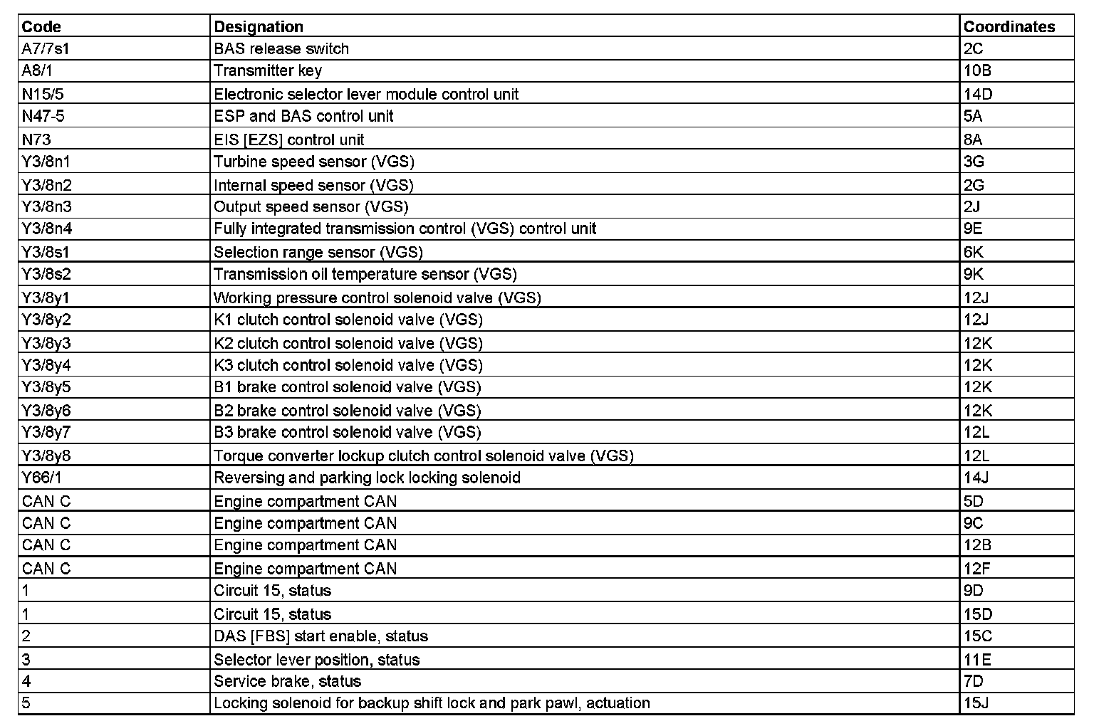 Electrical Function Schematic For Shift-lock PE27.19-P-2059TB
