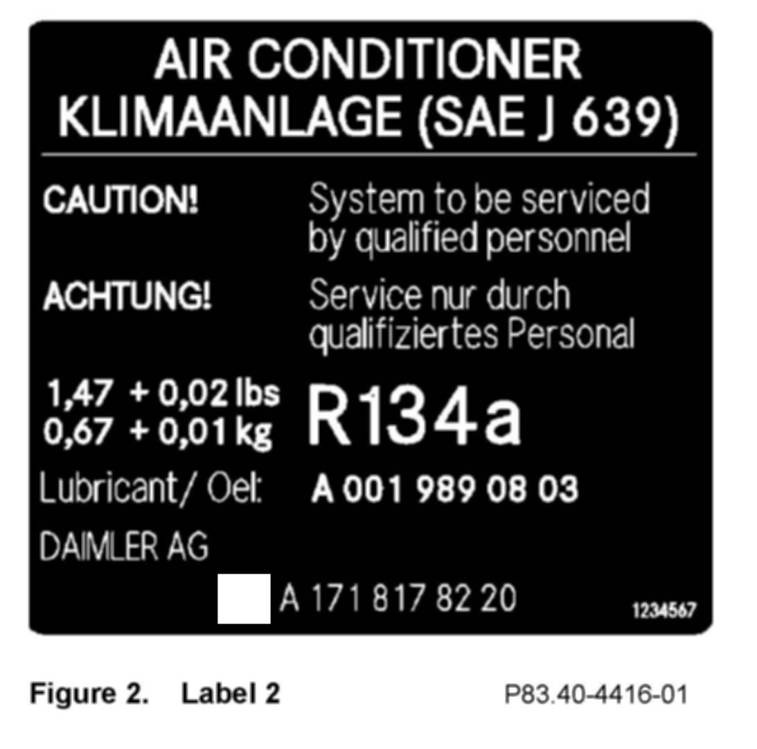 All of the specified vehicles were filled correctly, however, the listed refrigerant quantity on the label is too high. All labels must be replaced on vehicles with Code 800 as of 12/2008 and all other vehicles up to 3/12/2010.