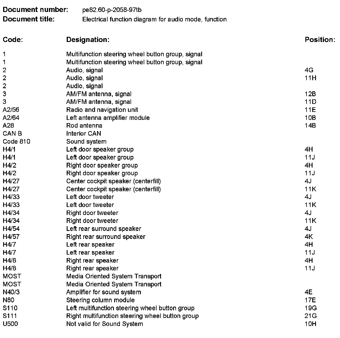 PE82.60-P-2058TB Electrical Function Diagram For Audio Mode, Function