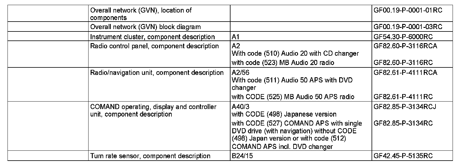 - Radio and navigation unit (A2/56) (with code (511) Audio 50 APS with DVD changer or with code (525) MB Audio 50 APS radio)