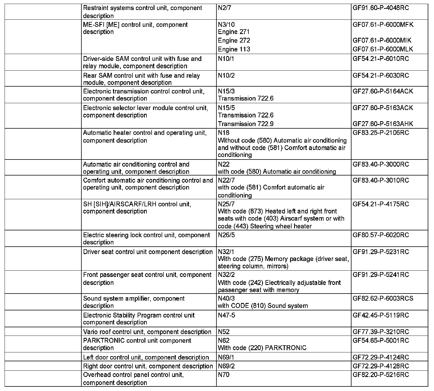 - driver-side front seat adjustment control unit with memory (N32/1) (with code (275) Memory package (driver seat, steering column, mirrors))