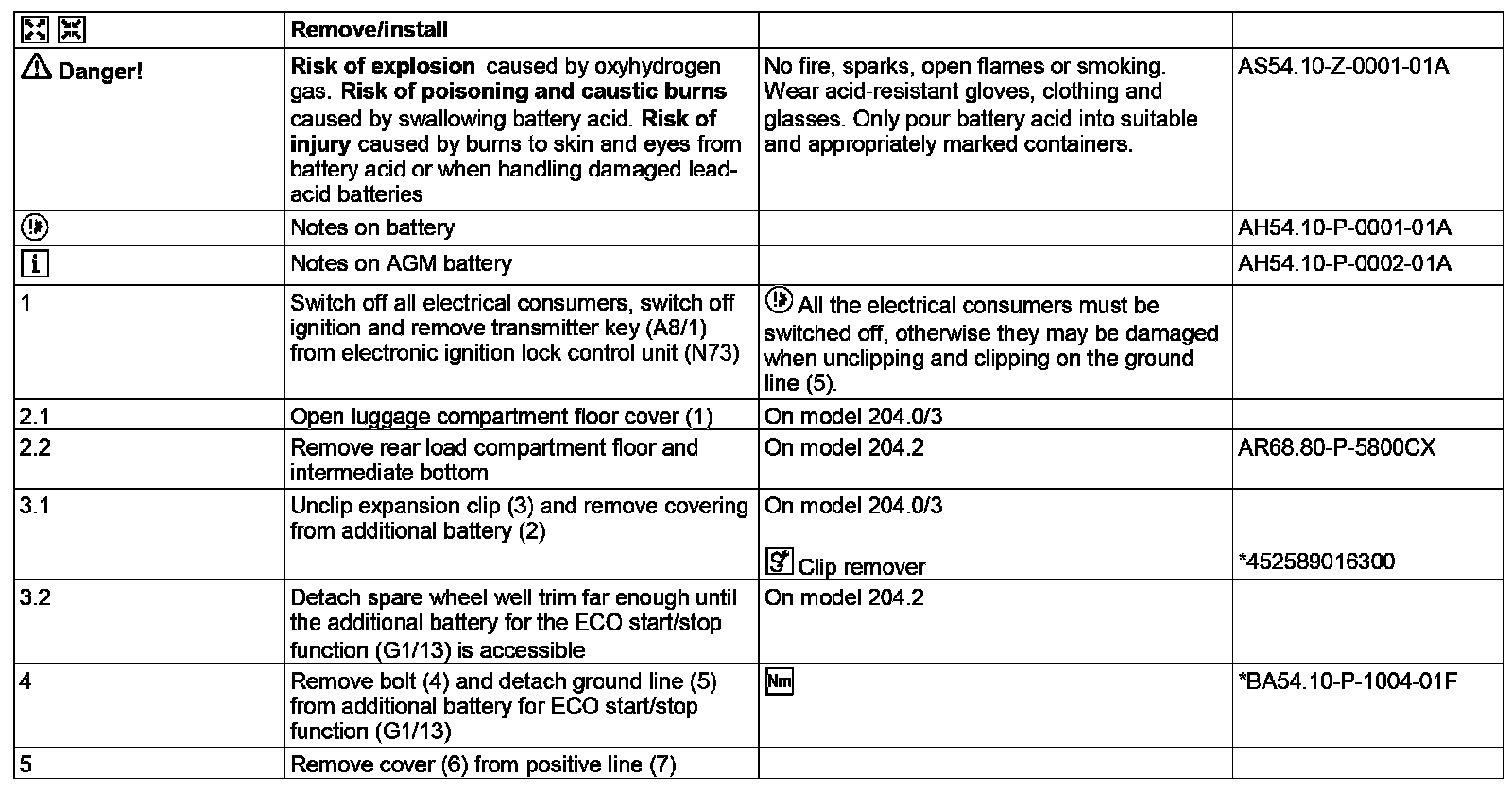 AR54.10-P-0007CW Remove/install Additional Battery