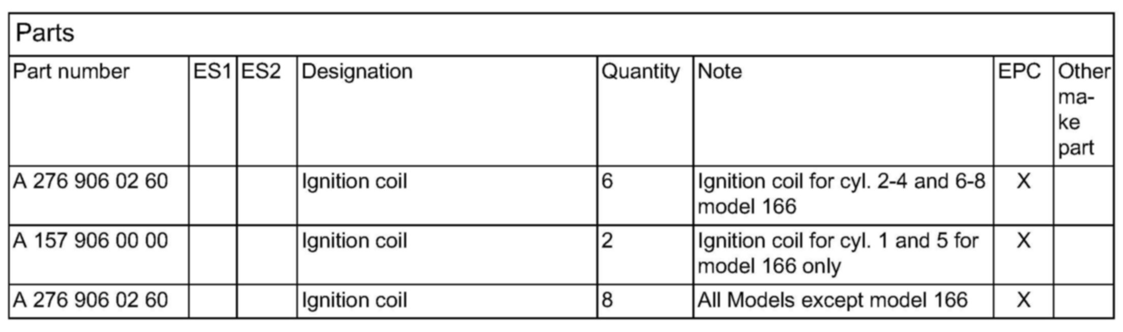 If ignition coils with a part number A 276 906 0160 are installed, replace all ignition coils as per parts information.