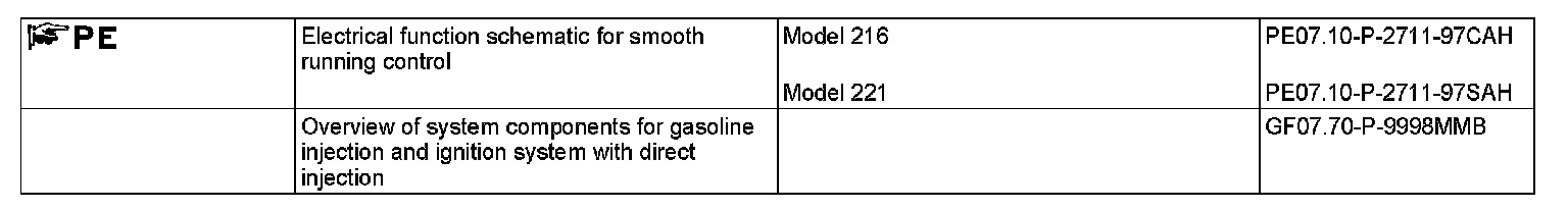 The ME-SFI [ME] control unit (N3/10) reads in the following sensors and signal for smooth running control: