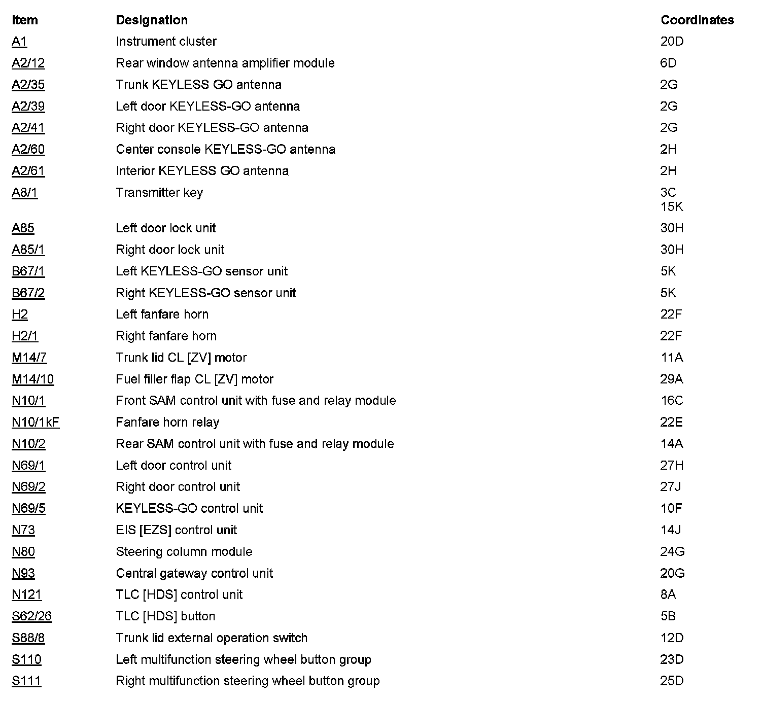 PE80.61-U-2051CAA Electrical Function Schematic For KEYLESS-GO Locking/Unlocking Function