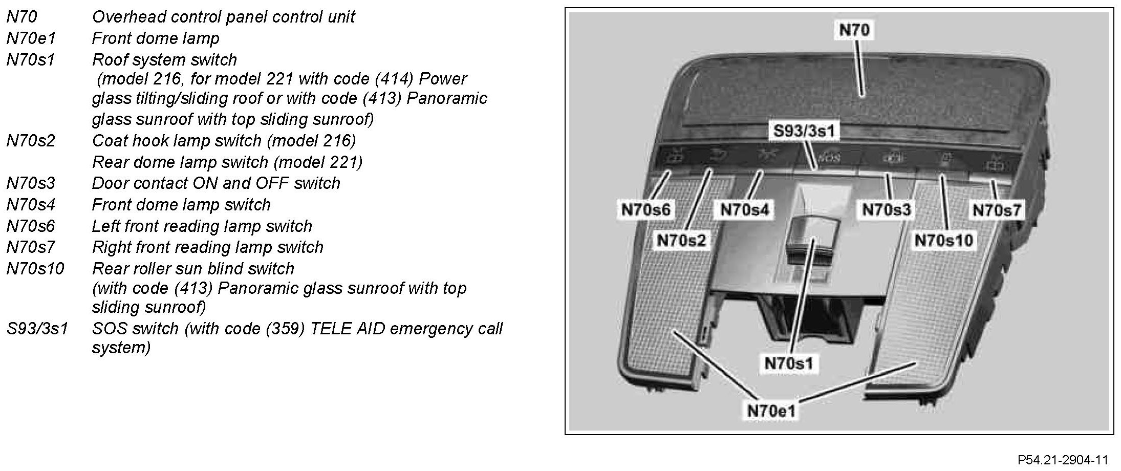 - Right front reading lamp switch Also with code (414) Power glass tilting/sliding roof: