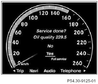 Reset service indicator with menu item "Complete Service" if all service items specified by ASSYST PLUS have been carried out. All service items are reset.