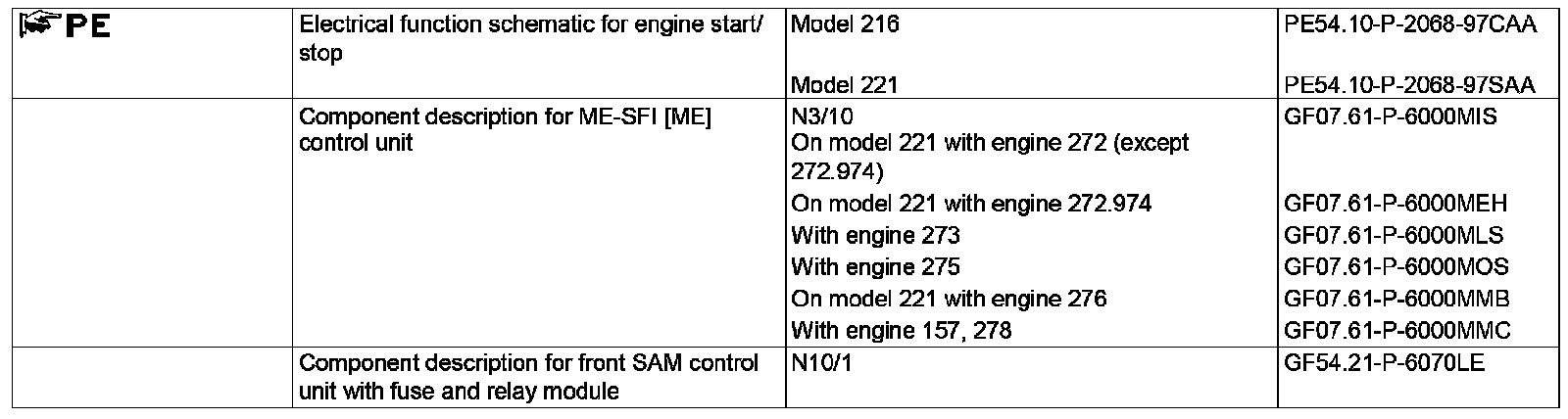 A detailed description of the engine start/stop function can be found in the function description of the gasoline injection and ignition system, motor electronics (ME-SFI [ME]).