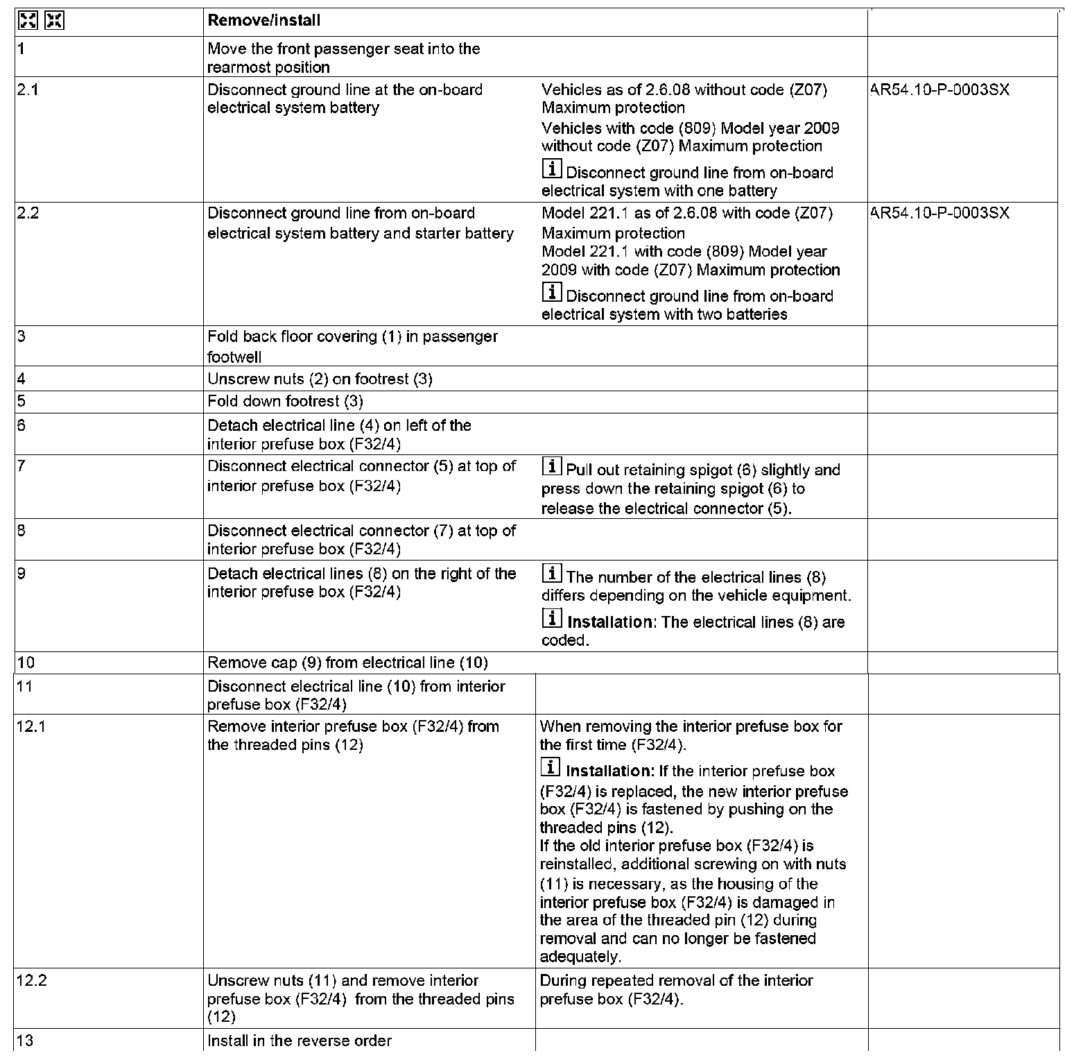 AR54.15-P-1350SX Remove/install Interior Compartment Prefuse Box