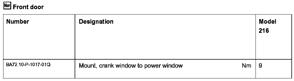 If applicable, change installation position of crank window (1) on rear driver (5) accordingly, thereby ensuring that bolts (2) on both drivers (5) are loosened and that bolt (2) is tightened on rear driver (5) and front driver (5) with the specified tightening torque.